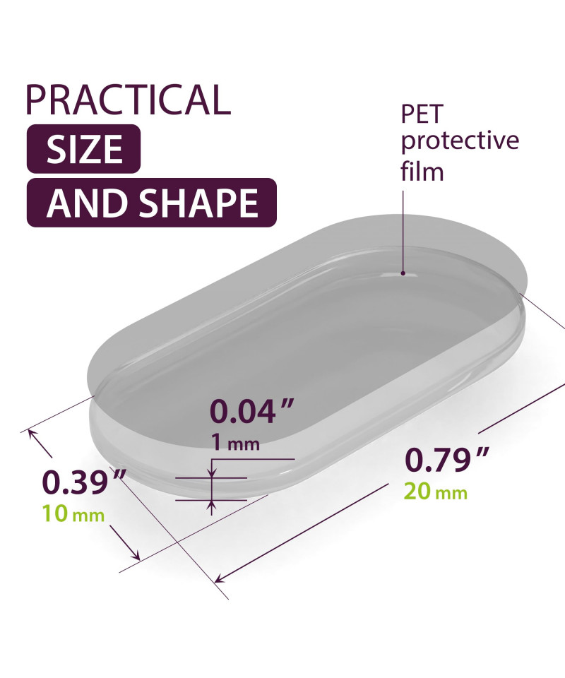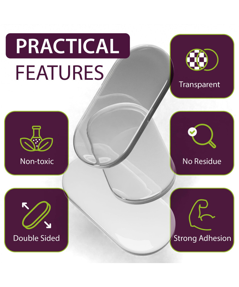 PREMIUM QUALITY GreenFix clear gel dots made of non-toxic materials following highest quality standards. Double sided sticky dots set consists of 200pcs thin oval shaped sticky tack, 0.4” x 0.8” each.